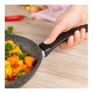 دسته ارگونومیک با طراحی خنک: راحت در دست گرفته میشود؛ مناسب انتقال از اجاق به فر (تا ۲۲۰ °C)