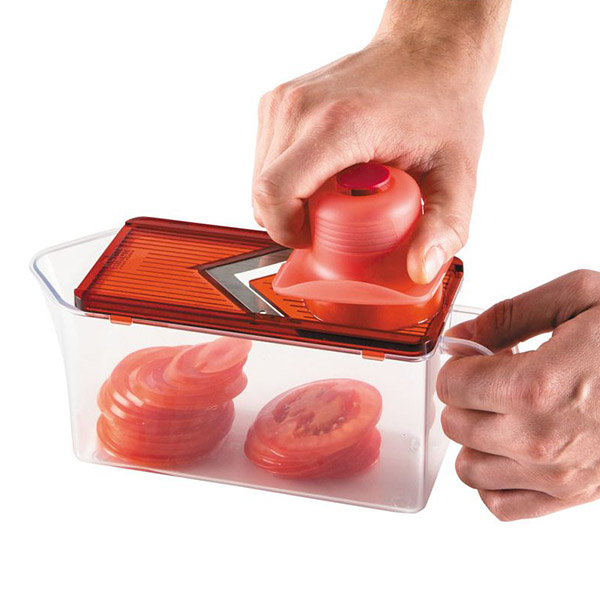جولین، مانند یک حرفه ای با یک ابزار آشپزخانه جمع و جور، برش بزنید و رنده کنید! تیغه ها به راحتی در بالای ظرف نگهداری می شوند و امکان استفاده منظم و آسان را فراهم می کنند. پایه بدون لغزش و دستگیره های جانبی ایمنی و ثبات را در حین برش فراهم می کند. همراه با محافظ دستی برای محافظت از انگشتان شما در حین برش. وقتی کارتان تمام شد، به سادگی درب انبار را بچسبانید تا باقیماندهها را ذخیره کنید یا ۴ تیغه و محافظ دستی را ذخیره کنید.