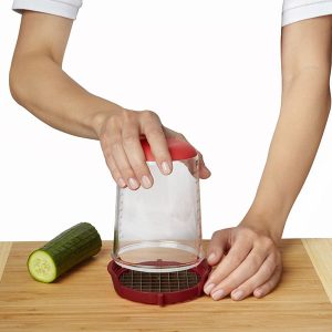 با فشار دادن غذا از طریق تیغه ها و داخل ظرف، سریعتر و یکنواخت تر برش می دهد.
