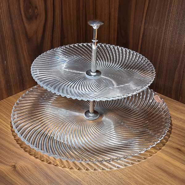 شیرینی خوری 2 طبقه از کریستال مرغوب ساخته شده و 2 بشقاب آن، در وسط توسط یک میله محکم به هم متصل شده اند. کاربردی بودن آن در صرفه جویی در فضای روی میز و سهولت جابجایی نهفته است. به راحتی می توانید انواع خوراکیهای مختلف را در طبقات آن  قرار دهید: ساندویچ، میوه، دسر و غیره.