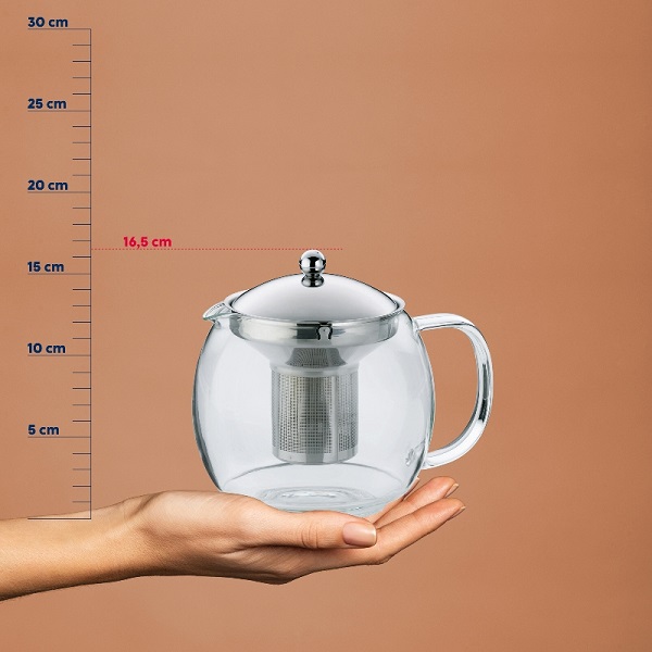 ارتفاع قوری ۱۶.۵ سانتی متر و قطر ۱۵ سانتی متر و حجم ۱.۵ لیتر است.