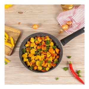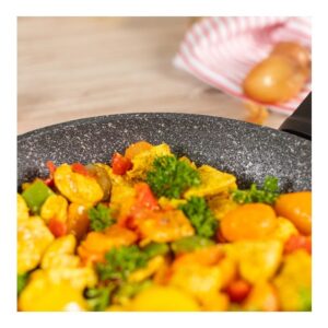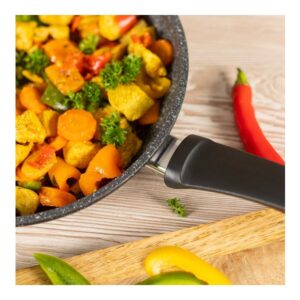 دسته ارگونومیک با طراحی خنک: راحت در دست گرفته میشود؛ مناسب انتقال از اجاق به فر (تا ۲۲۰ °C)
