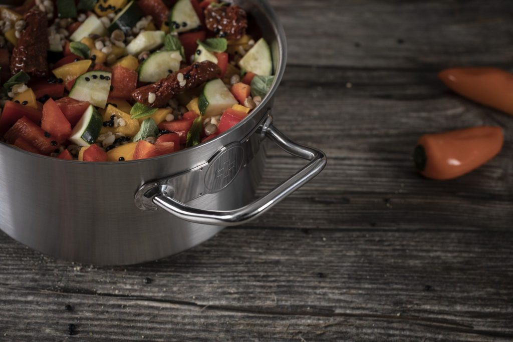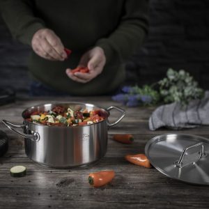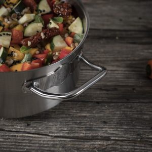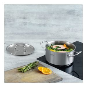 قابلمه با کیفیت و حرفه ای ساخت سوئیس برای سرآشپزها و همچنین آشپزهای خانگی، این قابلمه کاربردی و بادوام برای سالیان طولانی دوام می آورد. این قابلمه دارای دو دسته برای بلند کردن آسان از روی اجاق گاز یا در فر می باشد.